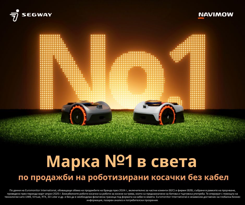 Българските собственици на вили и къщи с дворове вече разполагат с напълно автоматизирано решение за косене на трева, което ще им спести време и ще улесни поддръжката на градината. Това е новата роботизирана косачка Segway Navimow – i108Е, която още с пускането си на световния пазар се продава и в България. Тя не изисква полагане на ограничителен кабел и се управлява лесно чрез интуитивно мобилно приложение, превръщайки традиционната ежеседмична грижа за тревата в елементарна задача. А само преди дни Euromonitor International, глобален лидер в анализа на данни и пазарни проучвания, обяви марката Navimow за най-продаваната за 2024 г. в световен мащаб.